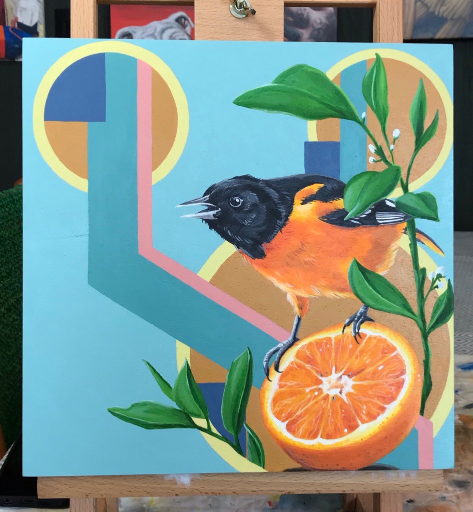BALTIMORE CITRUS Posted bychristopher hallMay 9, 2021Posted inUncategorizedTags:Art Deco, Baltimore, bird art, citrus, Contemporary, graphic, orange, oriole Baltimore Citrus 12×12 acrylic on panel Share this: Click to share on X (Opens in new window) X Click to share on Facebook (Opens in new window) Facebook Like Loading... Published by christopher hall Painter, tattooer. View more posts