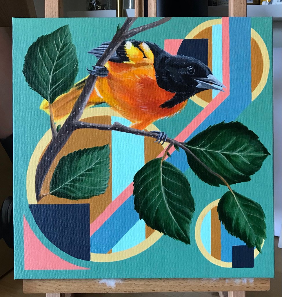 Here’s my submission for the Blue Crow gallery summer show entitled “Birch Perch” 12×12 acrylic on gallery canvas.