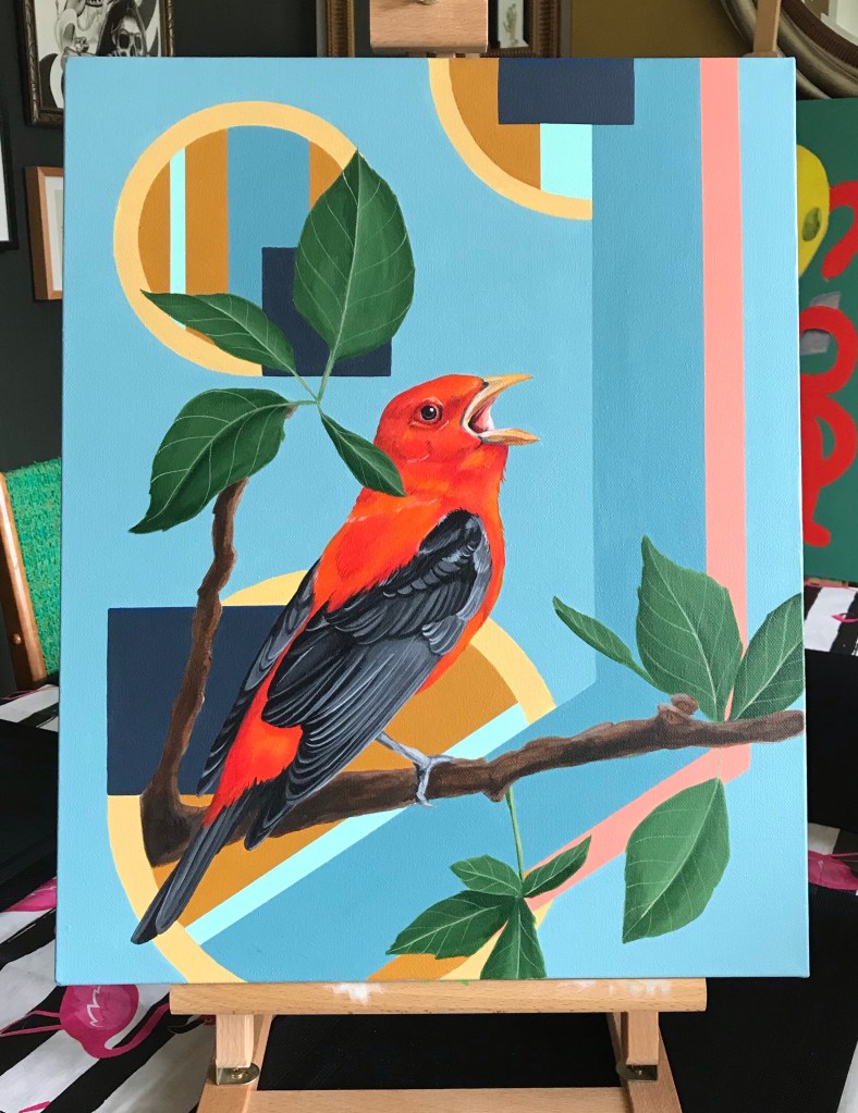 Scarlet Tangent, 16 x 20, acrylic on canvas