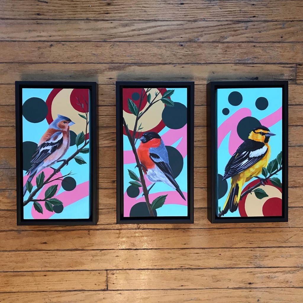 Prelude, Harbinger and Overture Posted bychristopher hallDecember 16, 2021Posted inUncategorizedTags:acrylics, Art Deco, Baltimore oriole, bird art, bullfinch, chaffinch, Contemporary, graphic, graphic design, orange, post modern Prelude, Harbinger and Overture All 6×12 acrylics on panel. Commissions. Share this: Click to share on X (Opens in new window) X Click to share on Facebook (Opens in new window) Facebook Like Loading... Published by christopher hall Painter, tattooer. View more posts